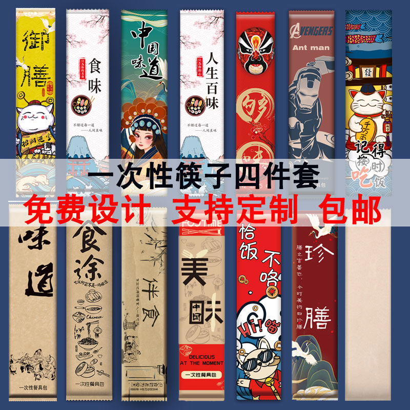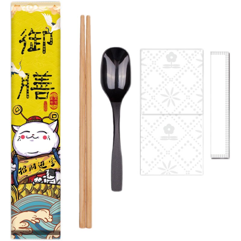 Disposable chopsticks Four pieces of commercial takeaway packed with three sets of custom-made high-end dining room Four-in-one tableware