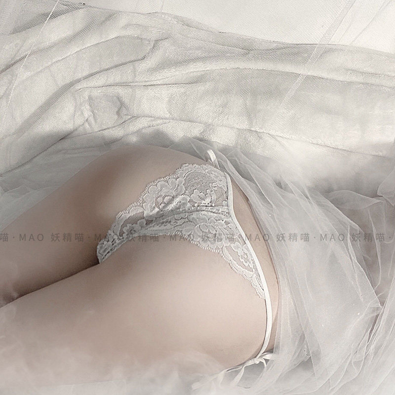 The selfie meow: the hand is greasy with a greasy opening lace sexy underpants couple female summer thin low waist and erotic Tiny pants.