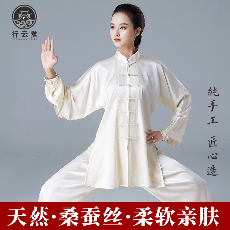 Yungang beige sang silk heavy silk silk tai chi clothing new summer Tai chi boxing mastery clothing spring and autumn