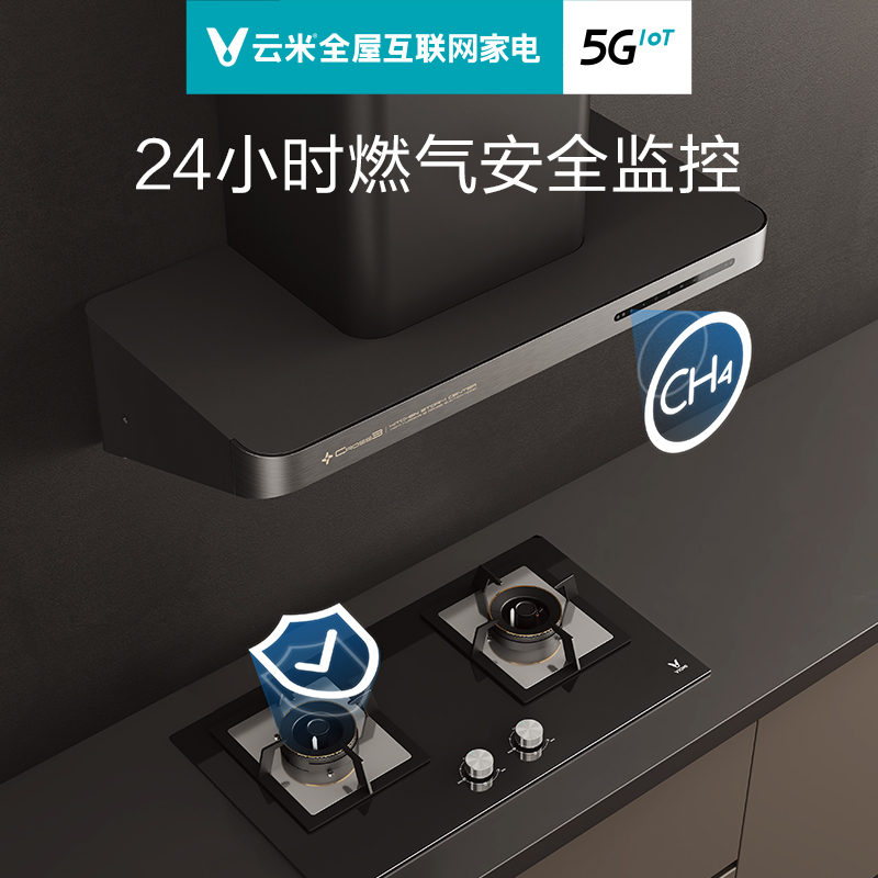 Yunmi range hood automatic cleaning CROSS3 intelligent linkage large suction kitchen top suction side smoking stove set