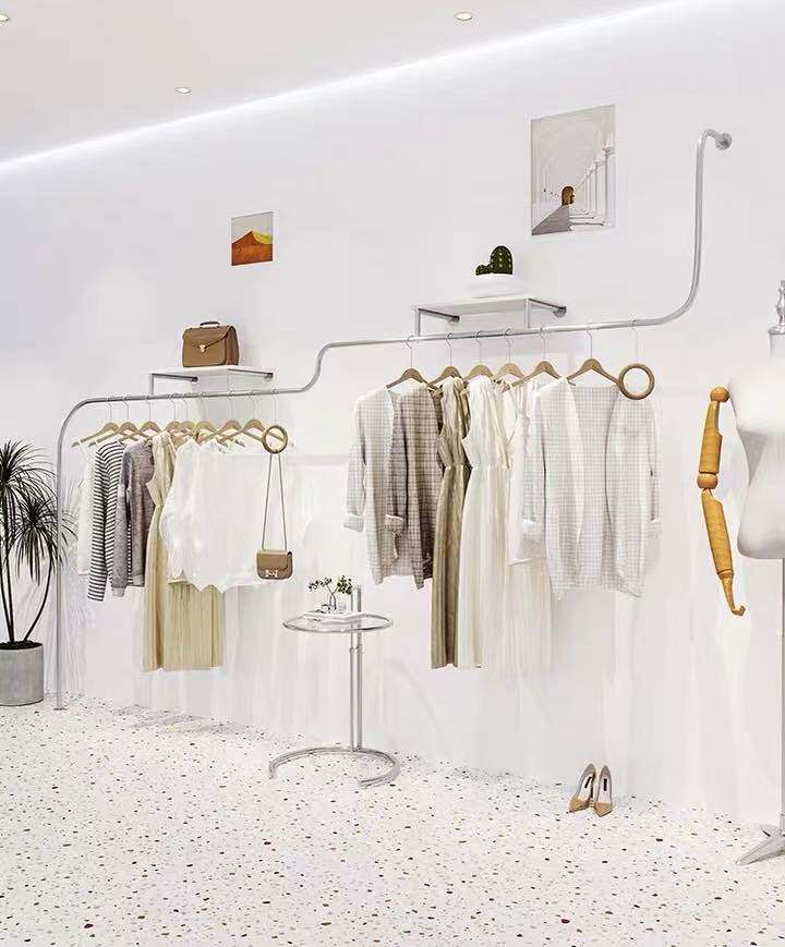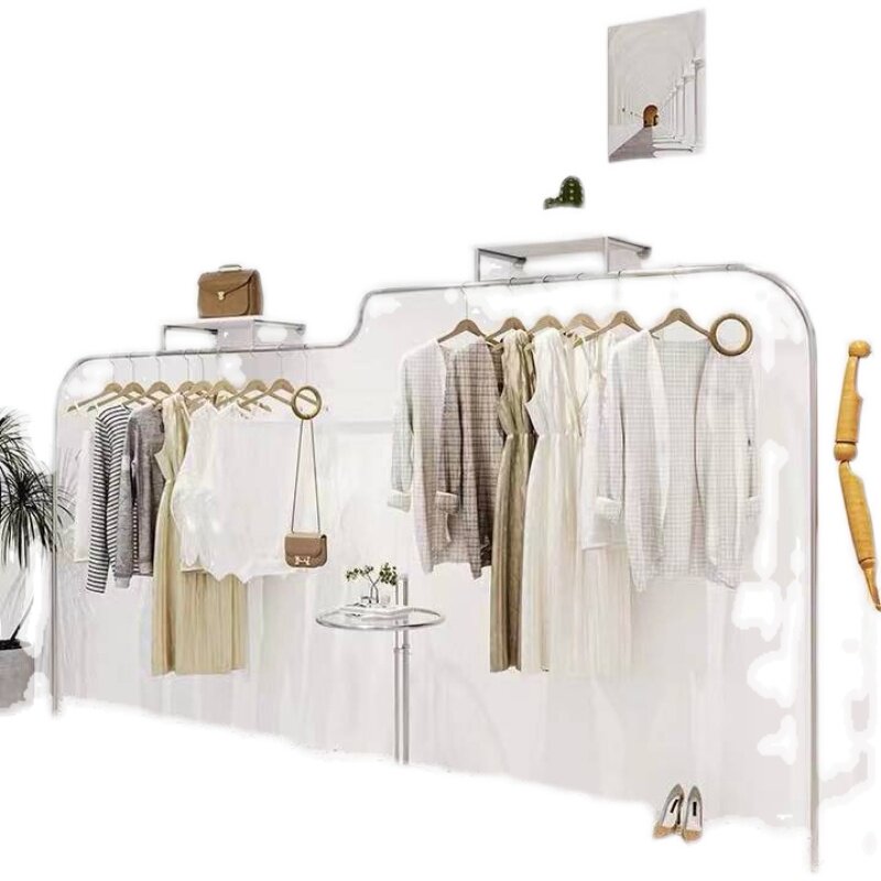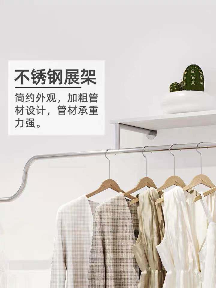 Clothing Shop With Board Show Shelf Stainless Steel Wire Drawing Hanghanger Women's Clothes Shop Creativity Upper Wall Hung Floor Display Shelf