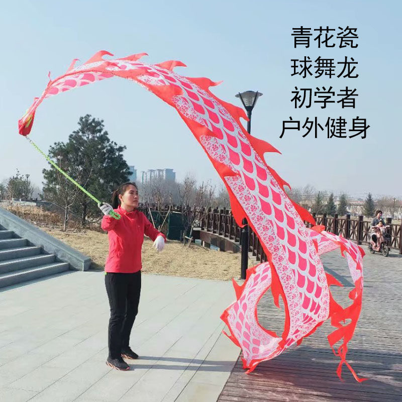 Square Fitness Dragon Belt Flashing Ribbon Children Middle-aged and Elderly Beginners Hand Dance Ball Blue and White Porcelain Dragon Dance Stage Performance Props