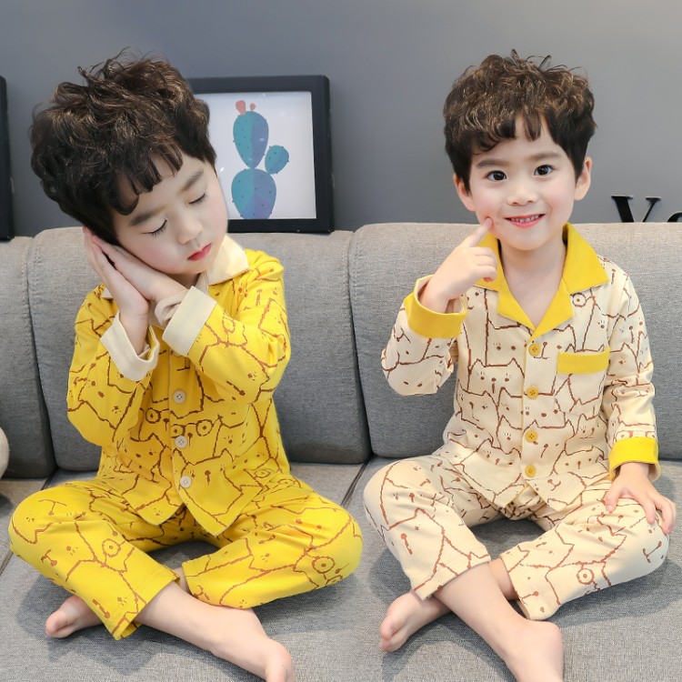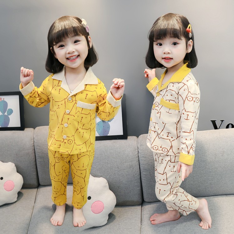 Child Sleepwear Spring Autumn Women's Baby Cartoon Home Suit Long Sleeve 1-3 Year Old Infant Air Conditioning Women's Children 4