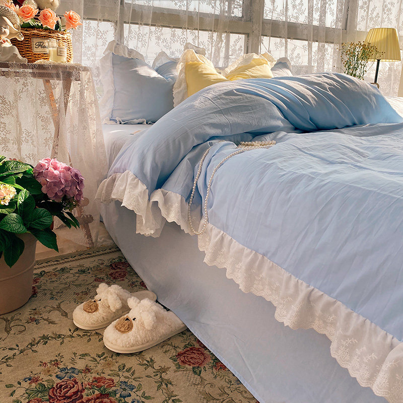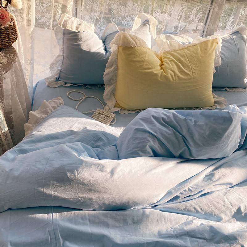 Pleasing) Korean Teenage Hearts SOFT GLUTINOUS CREAM FULL COTTON THREE-FOUR PIECES OF PURE COTTON LACE SINGLE SHEET QUILT COVER
