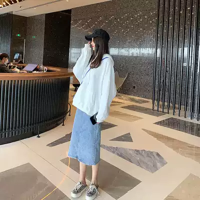 Cowboy skirt women 2021 Spring and Autumn New temperament long version of high waist cover hip slim small A- line dress