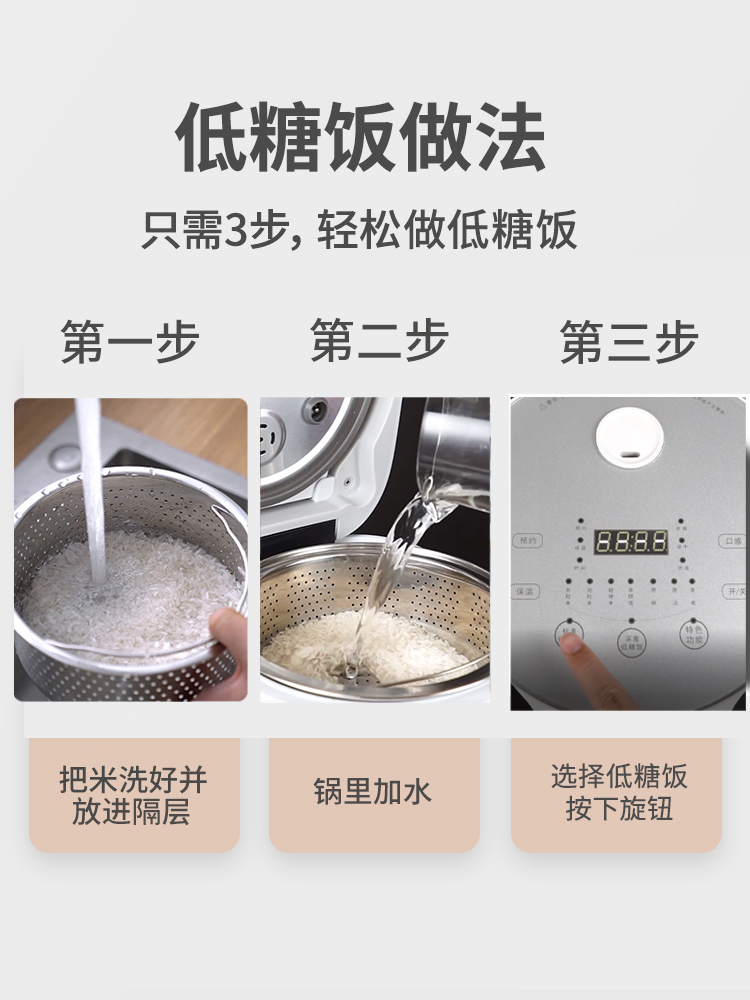 Qianshou Low-sugar Rice Cooker Rice Soup Separation 5L Automatic Household Intelligent Leak Rice Steamed Rice Stainless Steel Liner Rice Cooker