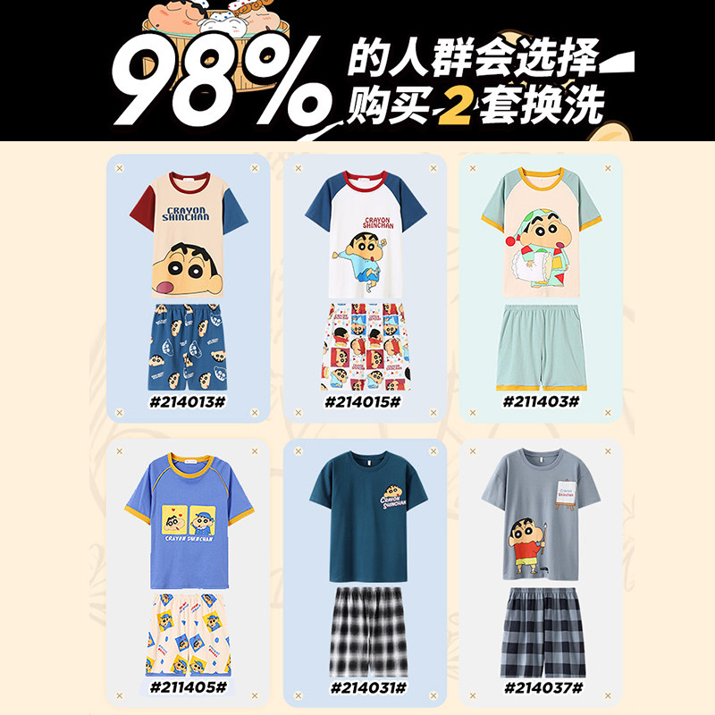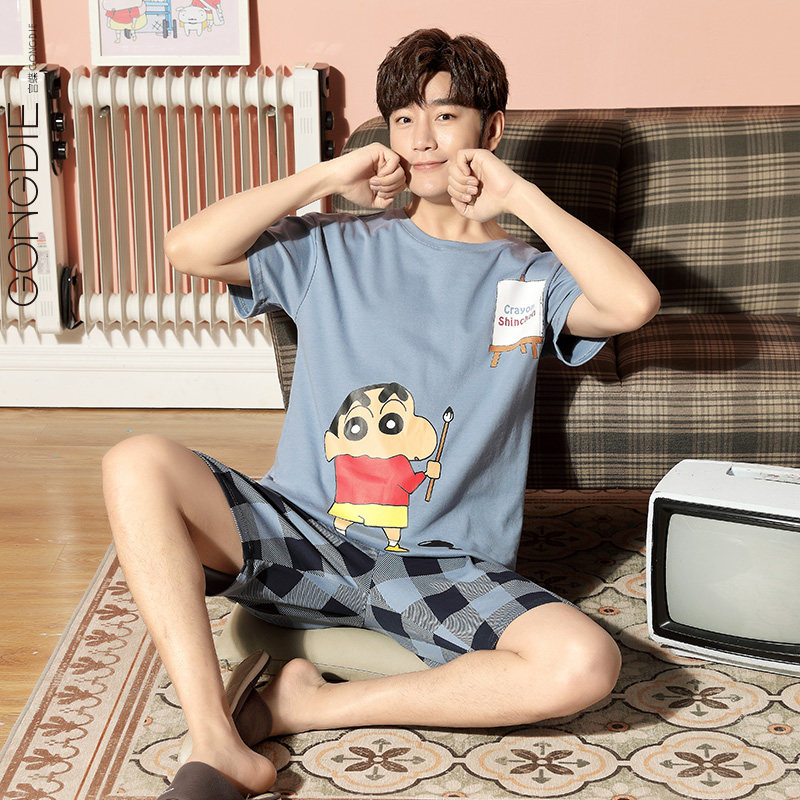 Crayon Xiaoxin joint pajamas men's summer cotton thin short-sleeved large size suit Cartoon student summer homewear