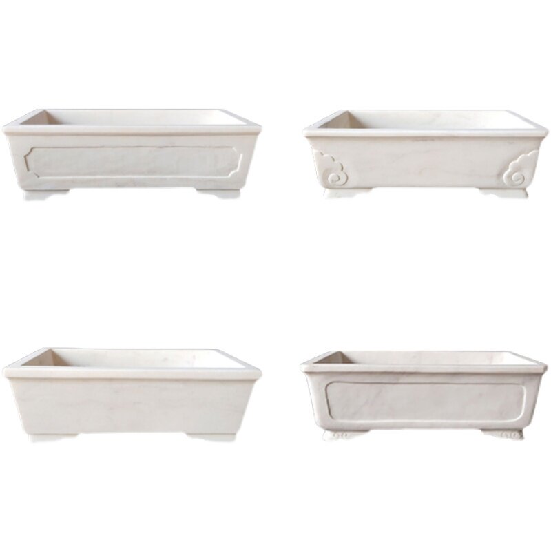 Stone Sculpture Han White Jade Bonsai Basin Micro Landscape Bonsai Base Tobogus Mountain Stone Base Natural Stone Rectangular Flower Pot fish tank-Taobao