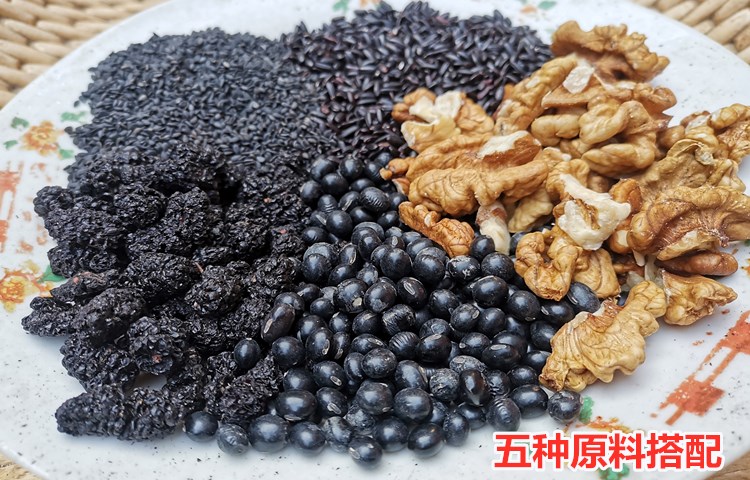 Now Grinding Black Sesame Powder Five Black Powder Cooked Black Bean Black Rice Mulberry Walnut Powder Five Grain Cereals Combined Ready-to-eat Meal Powder