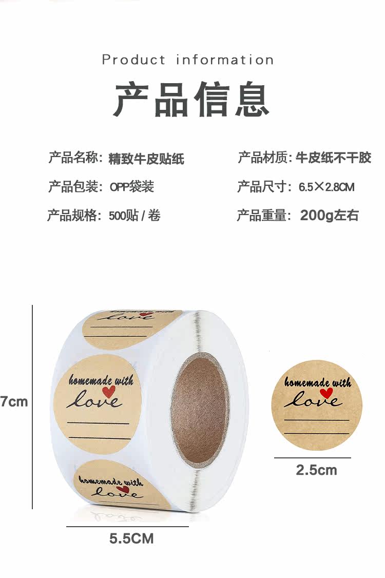2 inches 5 cm exquisite kraft paper students handmade love seal sticker writing line can label