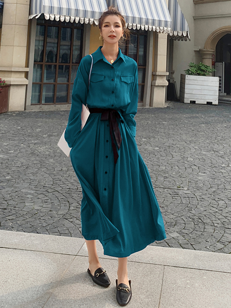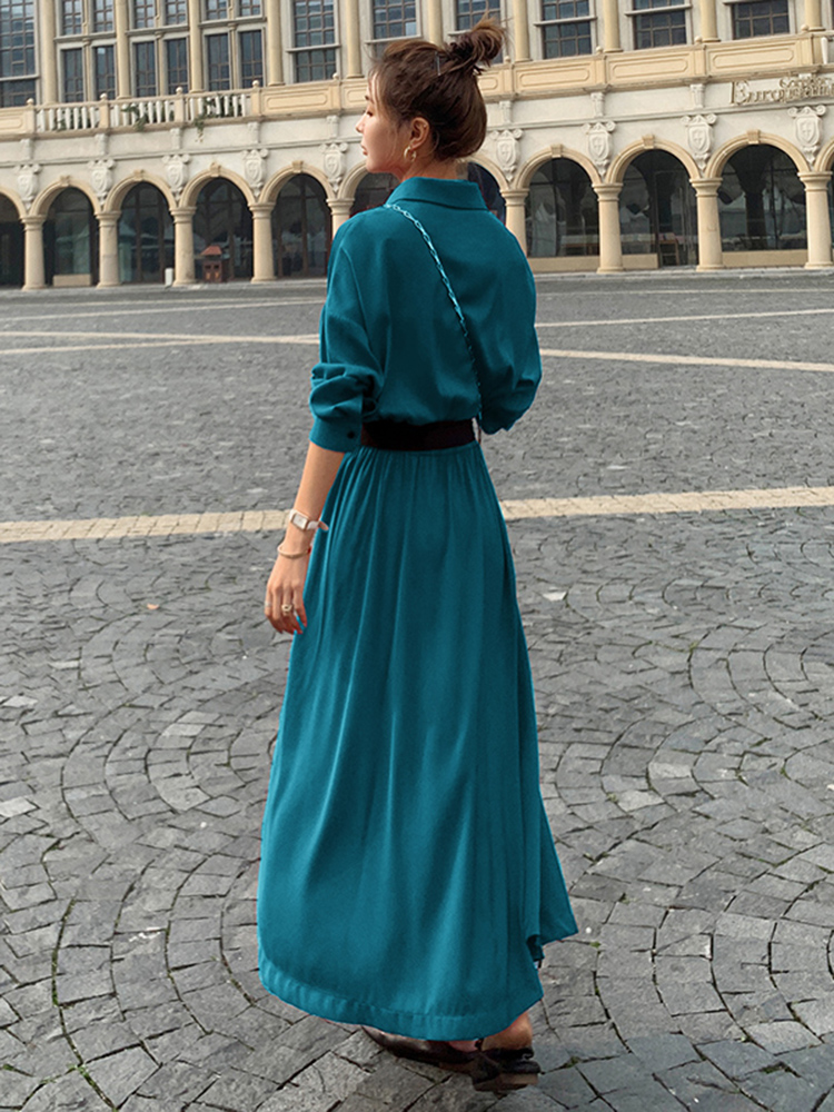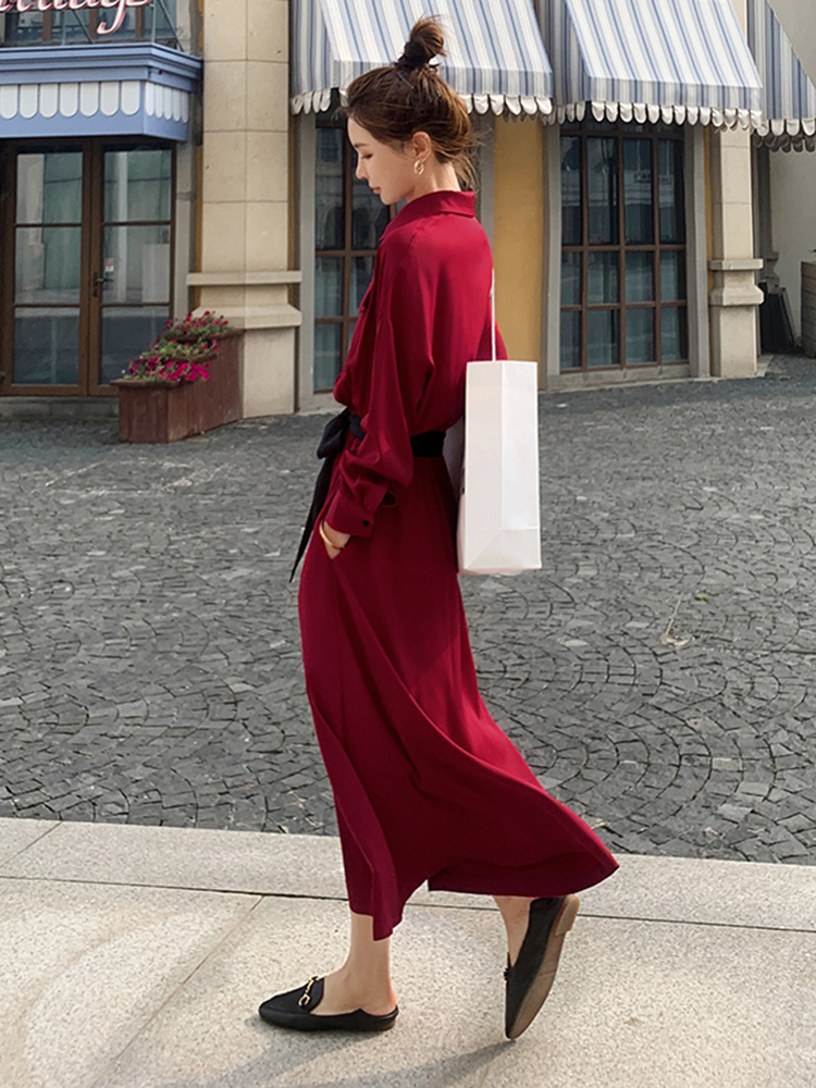 Lecea Alice French retro dress 2022 autumn new waist waist slimming belly temperament long skirt