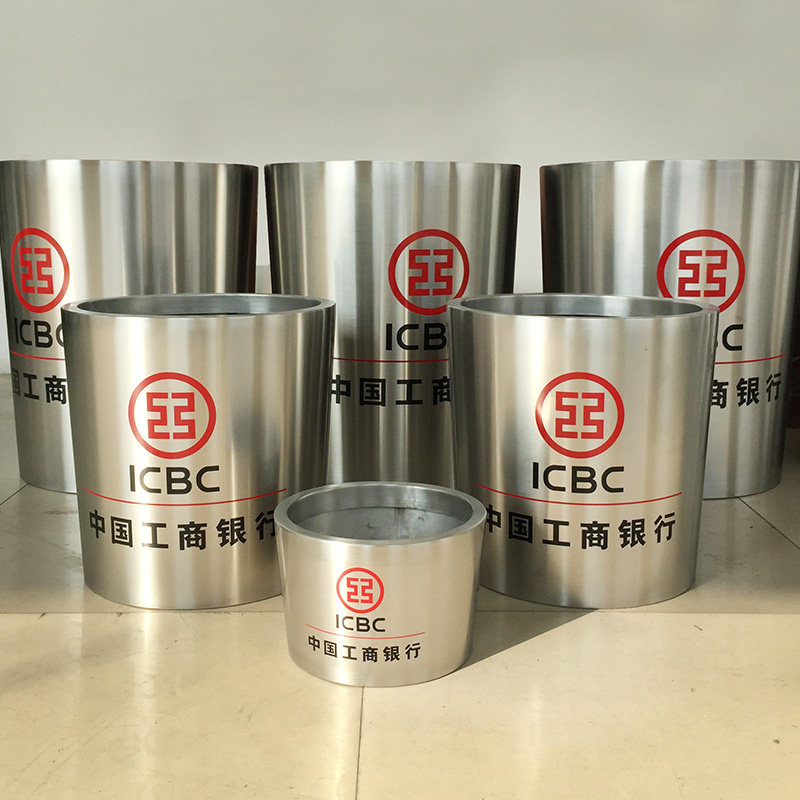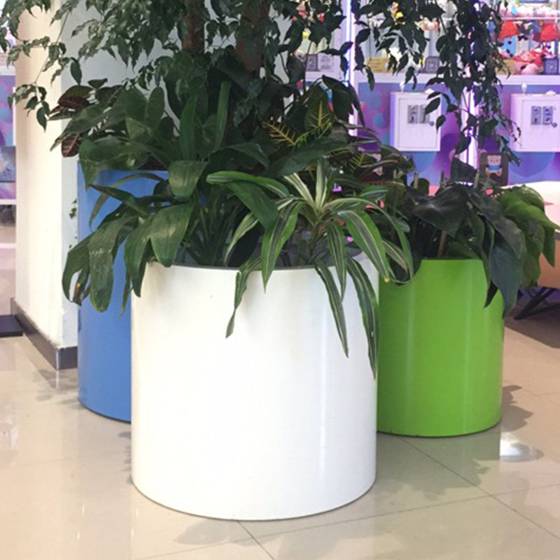 Stainless steel cylindrical flower pot outdoor large flower box metal flower box Hotel square Guesthouse Flower bowl custom size