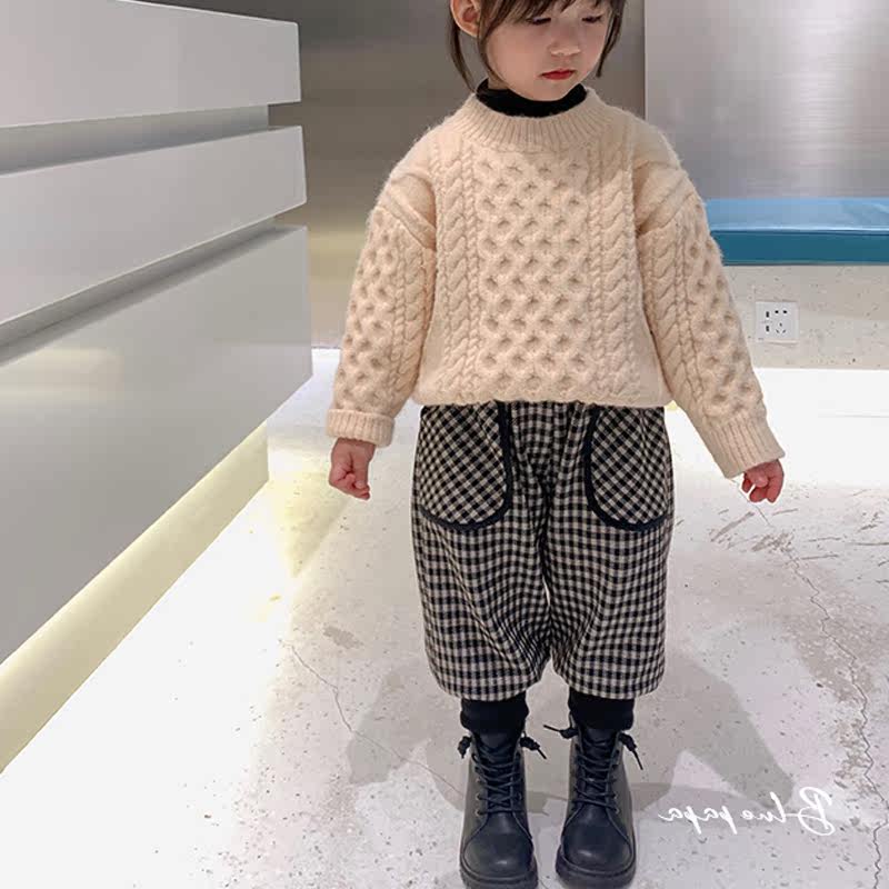 Children's clothing children's fleece pants thickened pants 2022 new warm autumn and winter girls' pants baby plaid trousers