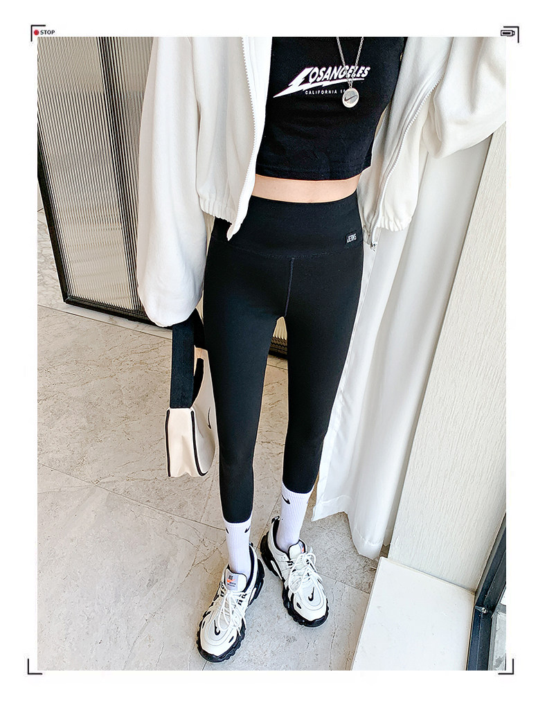 Sharkskin inner pants women's outerwear autumn and winter thin section matte high waist tummy control Barbie tight yoga plus velvet cropped pants