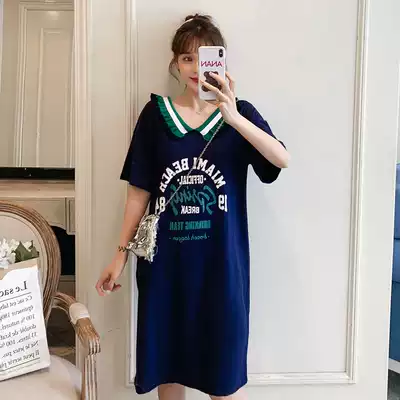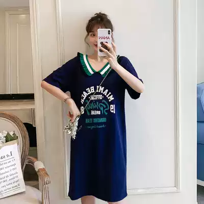 Large size dress 2021 new fat mm loose straight V collar knitted short sleeve casual fashion printed long skirt