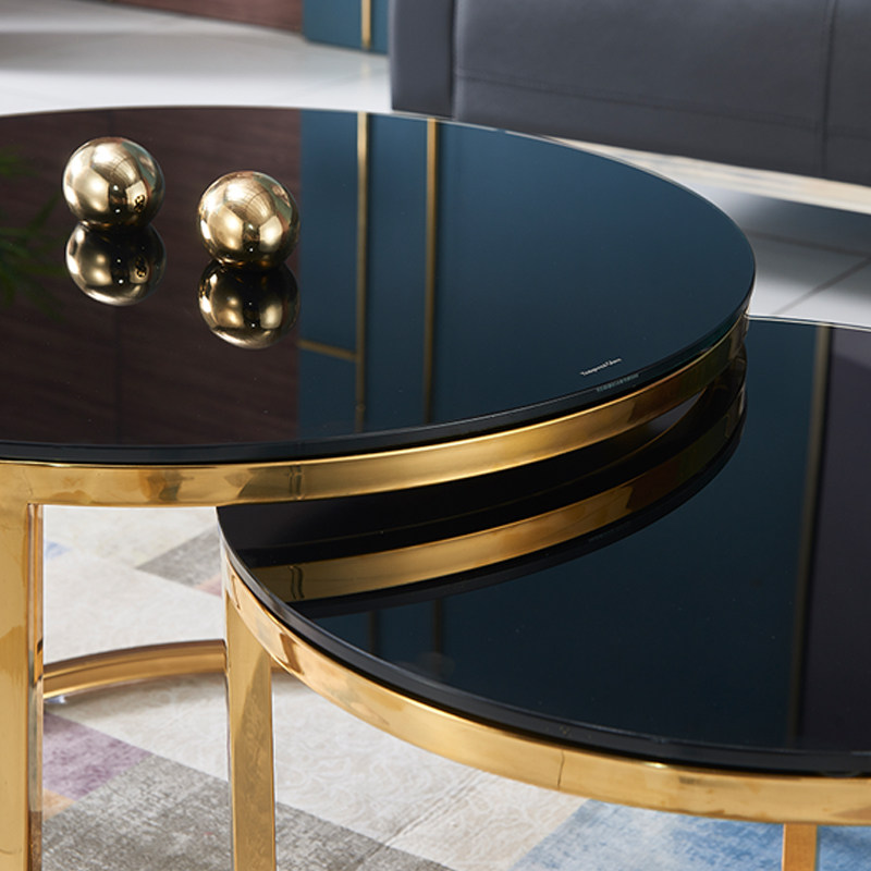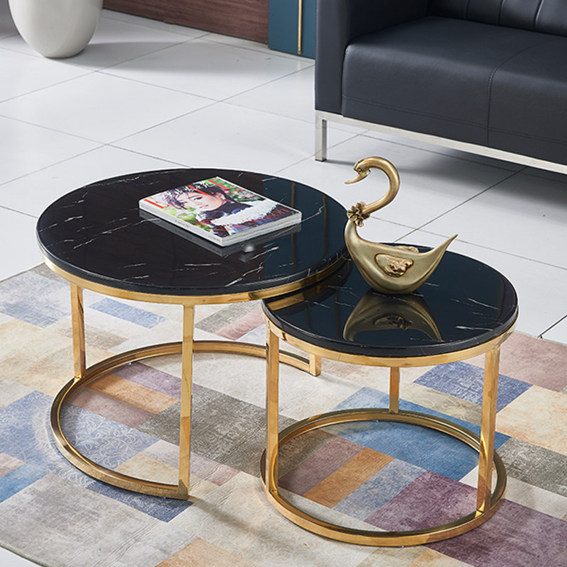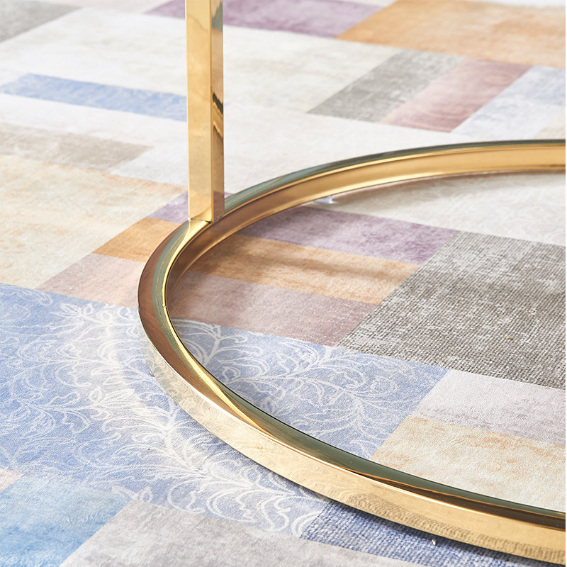 Nordic light luxury round table small apartment simple round living room marble home glass small table coffee table combination