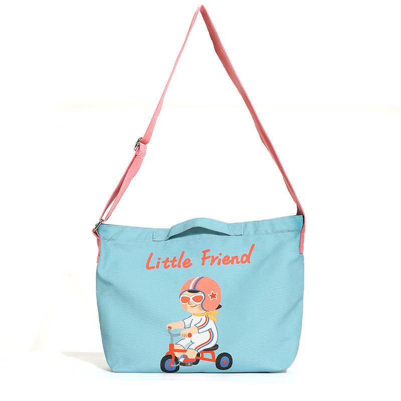 White—cat—messenger bag Pink—astronaut—messenger bag Light blue—cycling doll—messenger bag