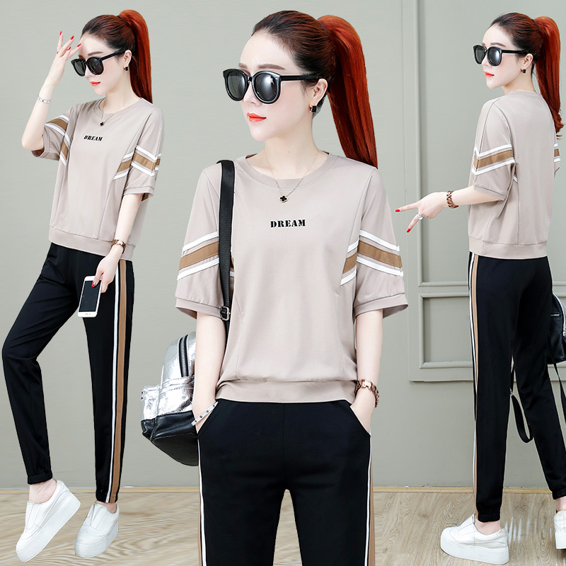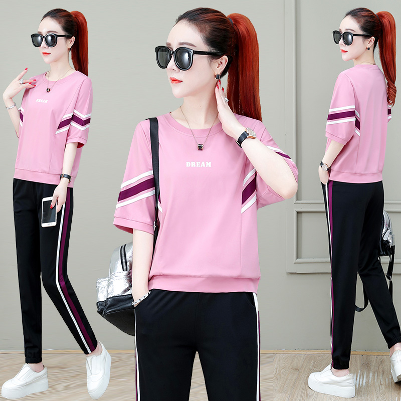 Sports suit women's summer 2022 new fashion loose large size running clothes thin section short-sleeved summer leisure two-piece