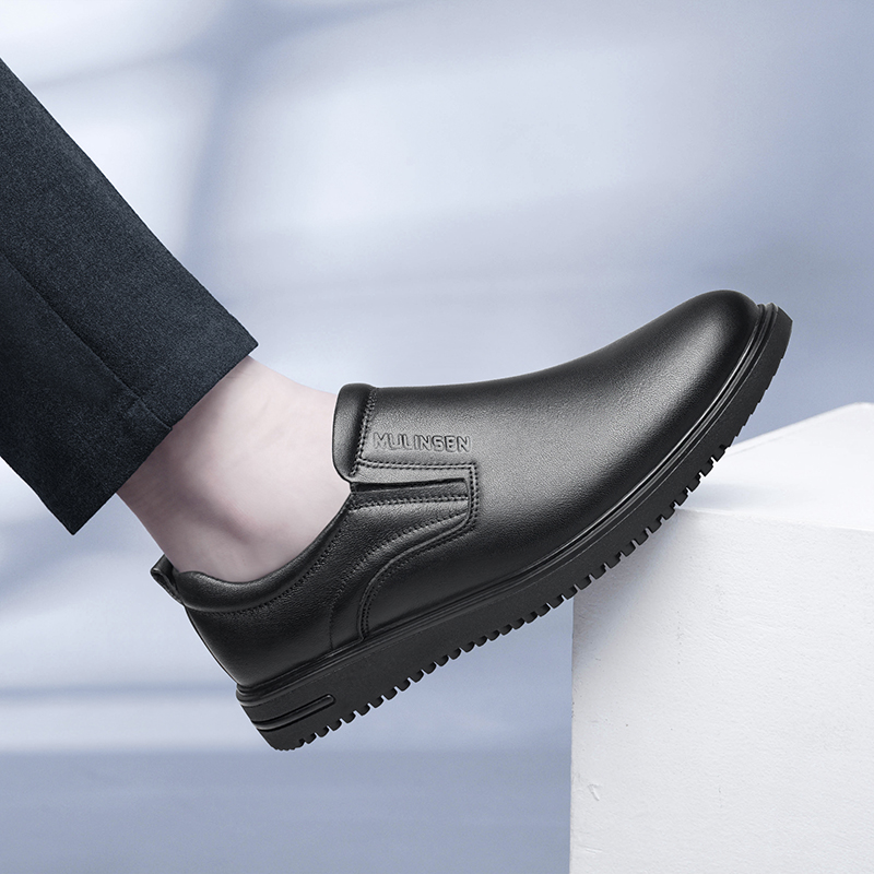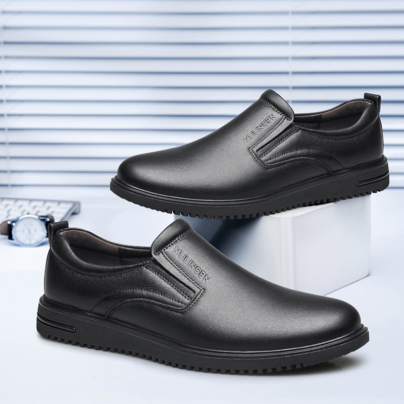 Mulinsen official flagship store winter leather shoes men's leather soft leather soft bottom breathable slip-on business casual shoes