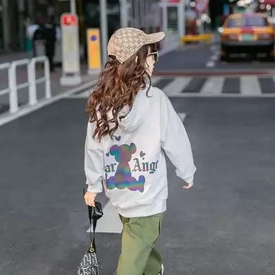 Girls thick T-shirt children's clothing 2021 spring new Korean version of the big children's fluorescent foreign school cartoon printing casual top tide brand