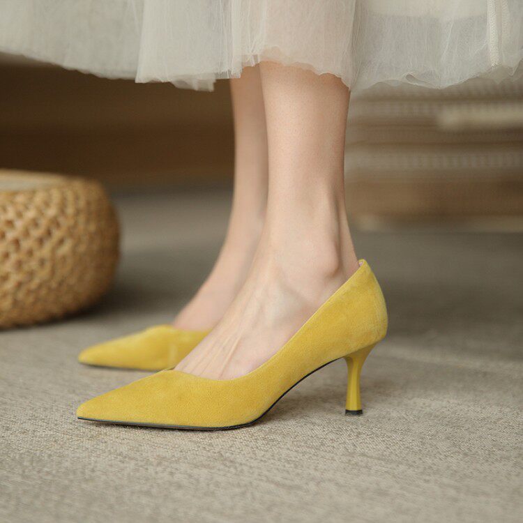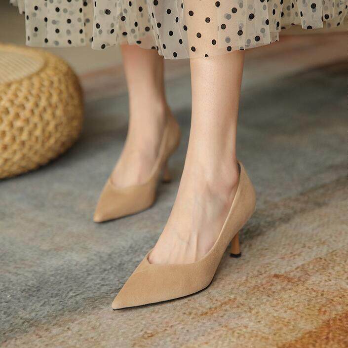 Givenivan foreign style commuting ~ leather Yangjing high-heeled shoes women's stiletto pointed toe single shoes all-match work shoes 6 5