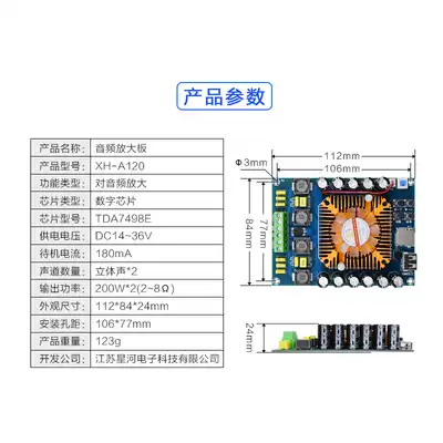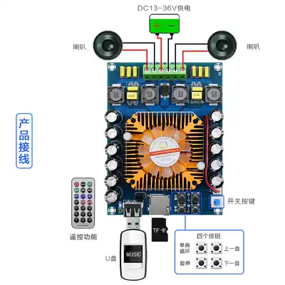 XH-A120 super power digital power amplifier board TDA7498E support U disk TF card with remote control dual 200W