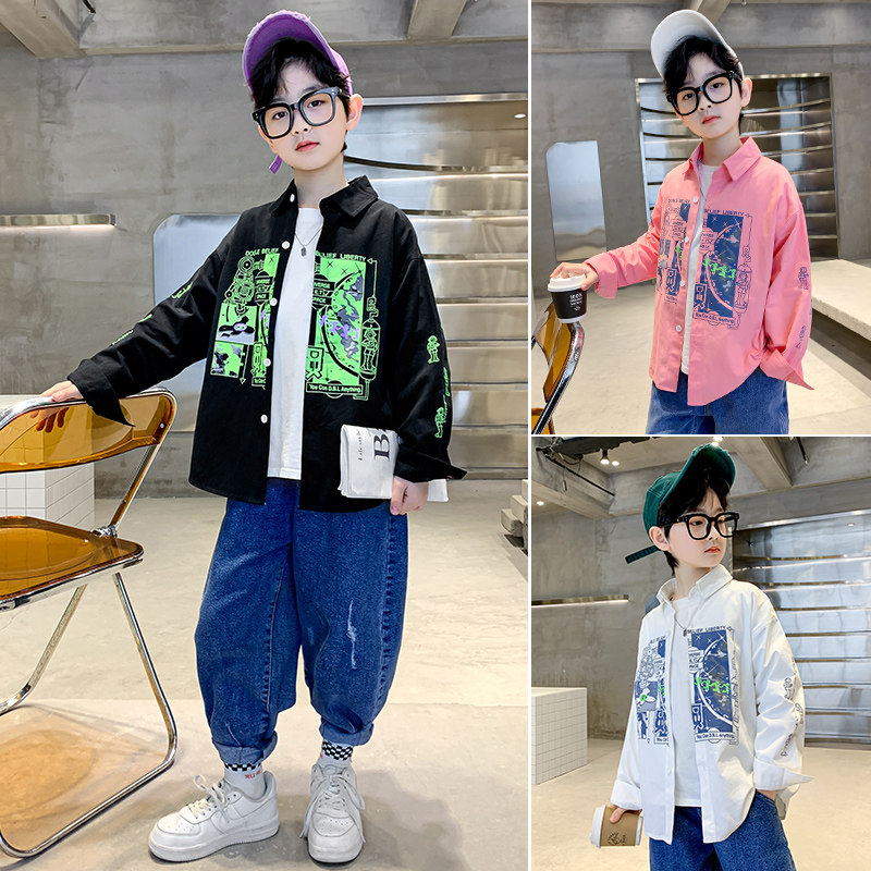 Boys' shirts cotton autumn 2022 new children's suits autumn models middle and large children's spring and autumn coats white fried street shirts