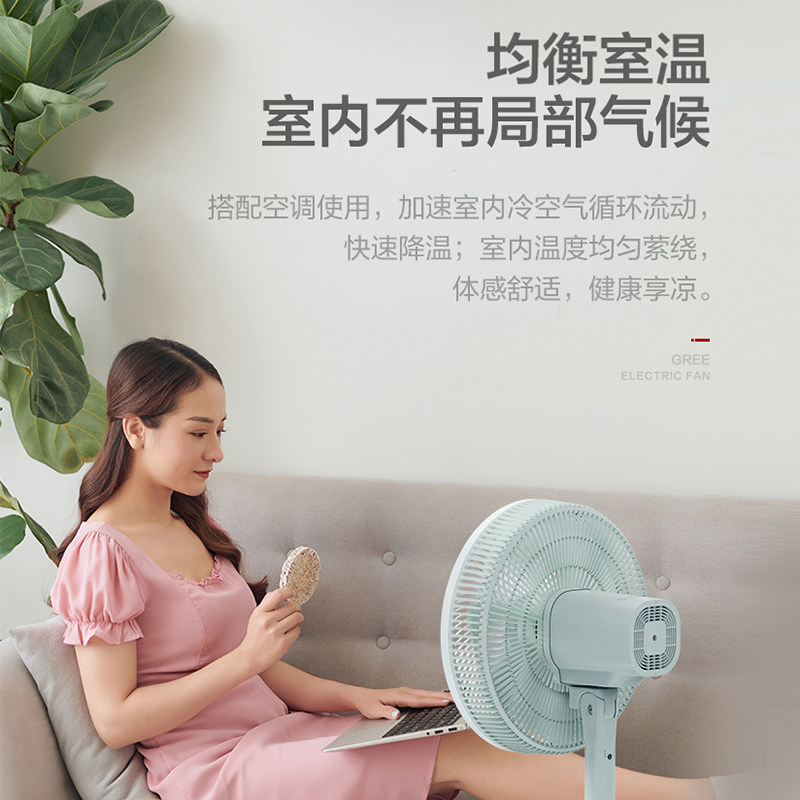 Gree electric fan desktop home floor fan remote control student dormitory energy-saving turn page light tone timing shaking head vertical