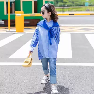 Children's clothing girls ' shirts 2021 spring new children's western school striped shirts college style big children's shirt skirt tide