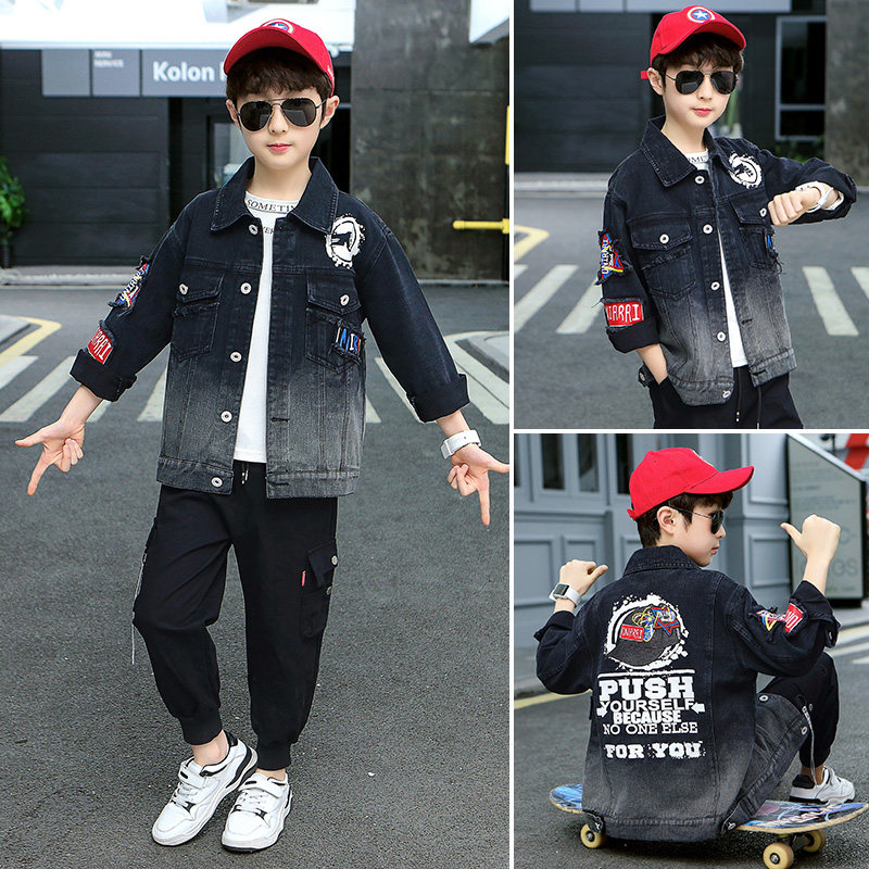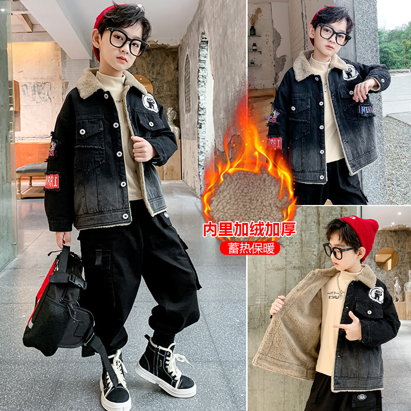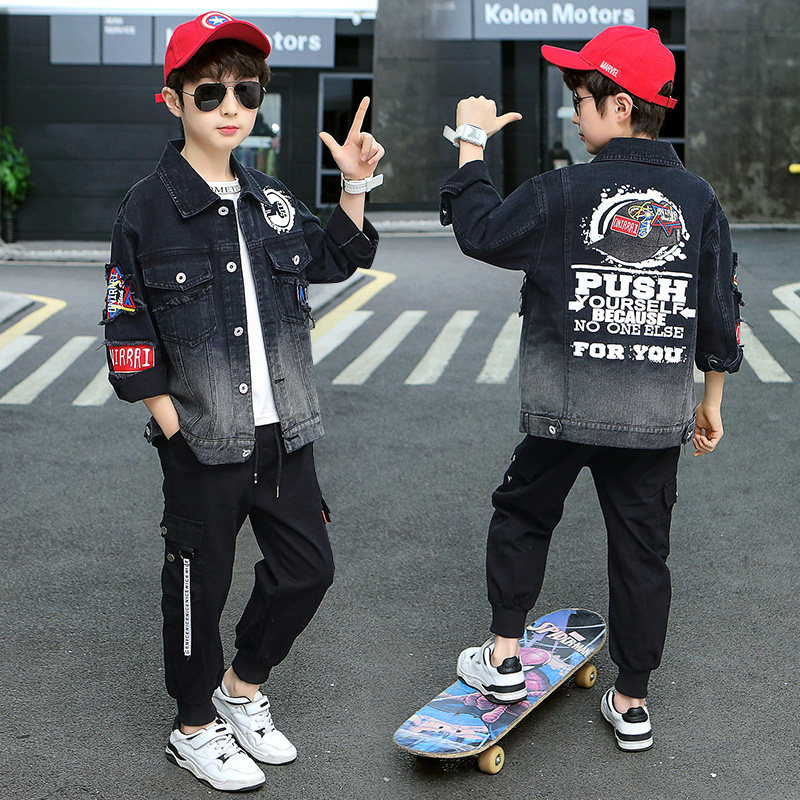 Boys' denim jacket 2022 new spring children's Korean version of the big boy's foreign style fleece top trend spring and autumn - Taobao
