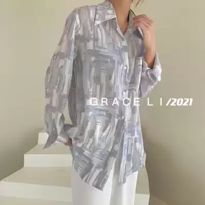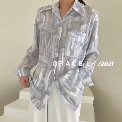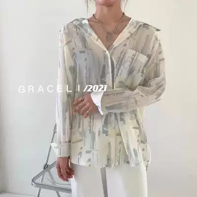 Shirt women's spring retro Hong Kong flavor drooping loose thin long sleeve chiffon shirt wild Western design niche top