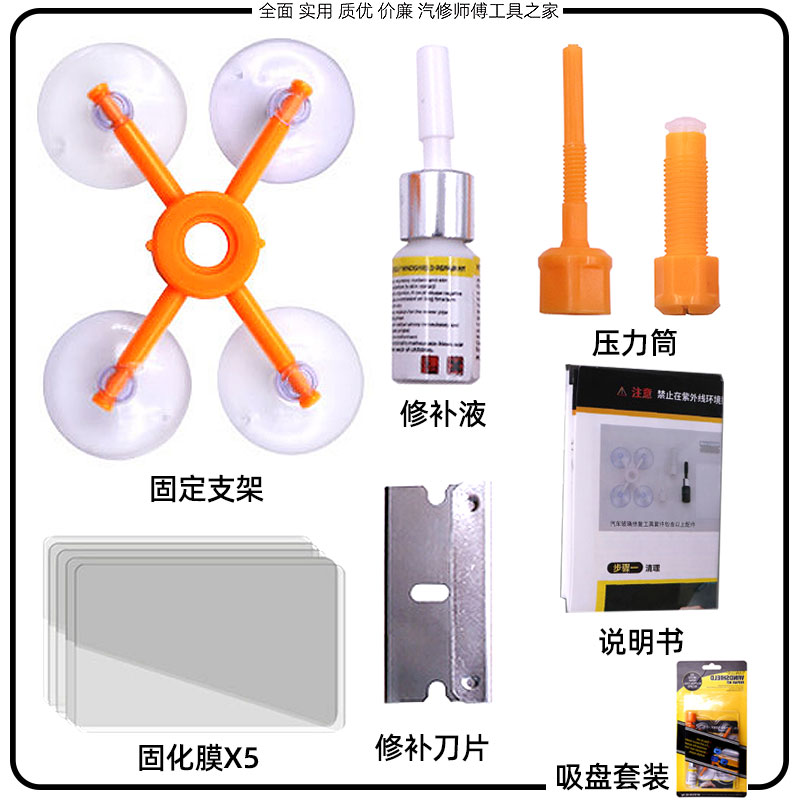 Car stopfront glass repair tool (sucker type) car stopper front glass repair tool (adhesive type) glass repair tool (3 pieces cover) front glass repair tool (special for long cracks)