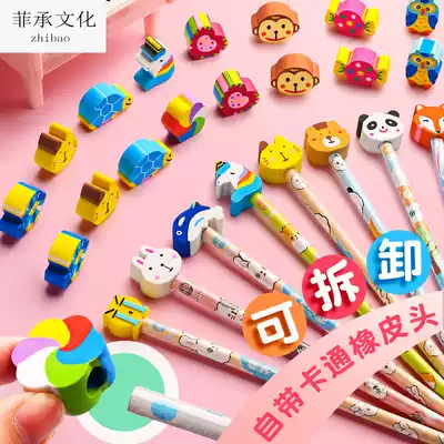 Children hb than pencil first grade primary school students kindergarten with beginners lead-free cartoon cute super cute creative pen with eraser head learning stationery set good prize