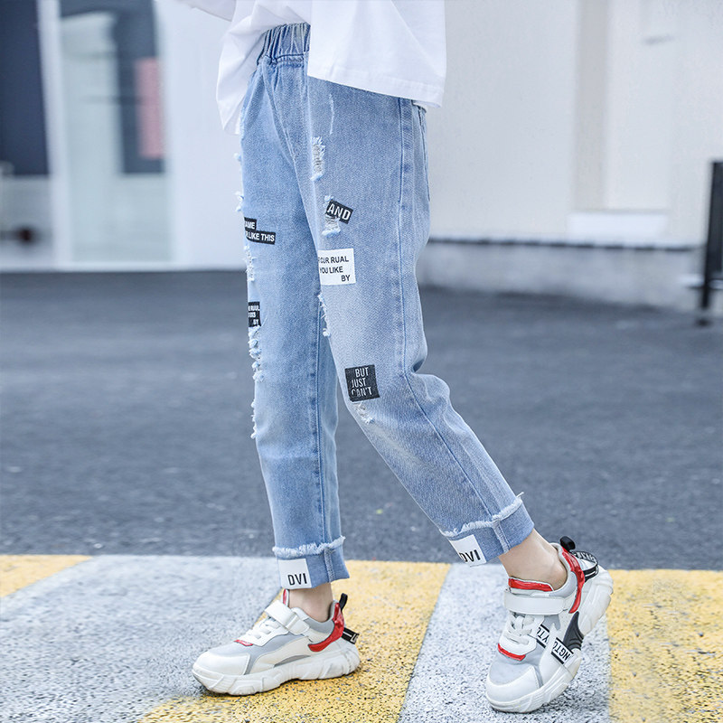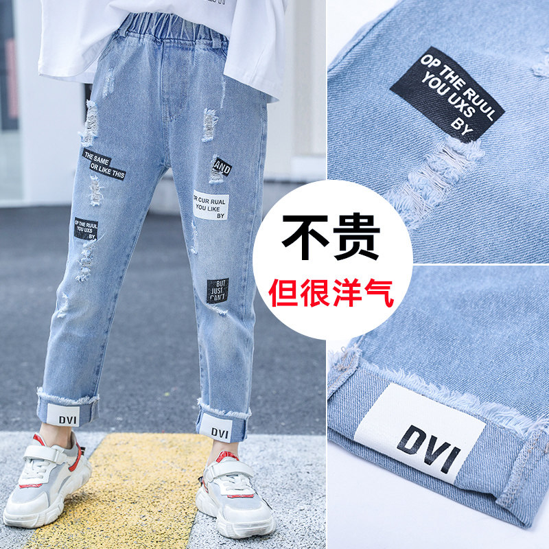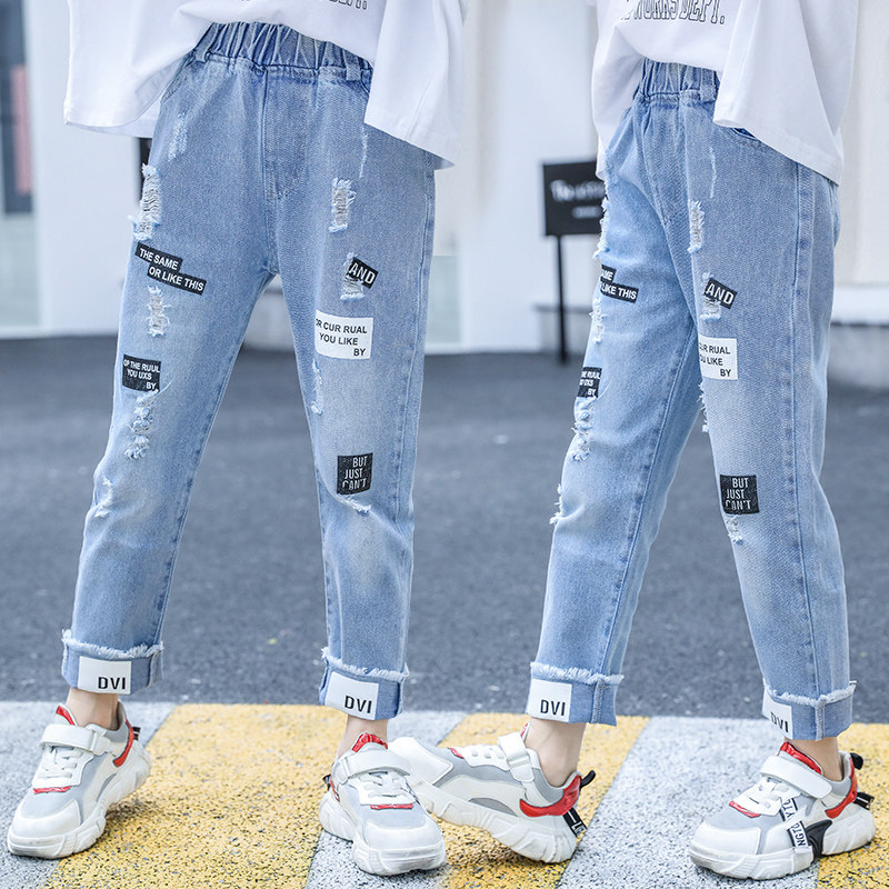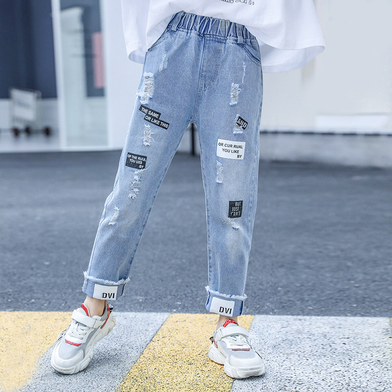 Girl Jeans Spring Autumn Children's Pants With Pants Autumn Slim Fit 2022 New Foreign Pie Long Pants Outside Wearing a Broken Hole