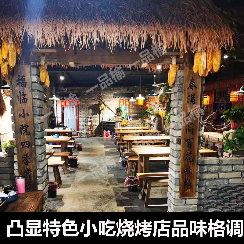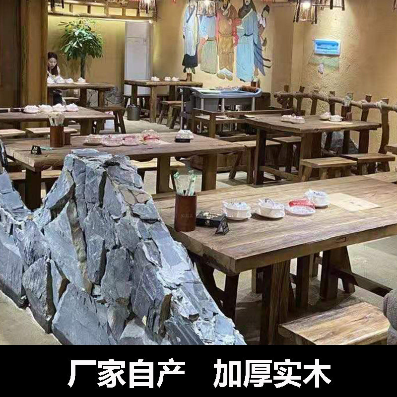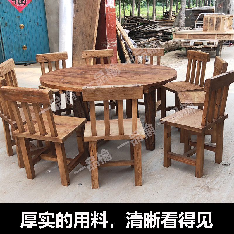 Solid wooden table and chair combined restaurantCaterina Fast food barbecue hotel household old elm door board rectangular round table