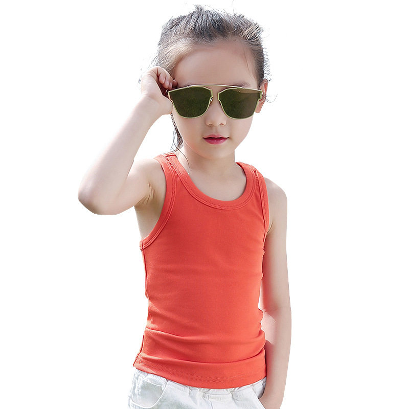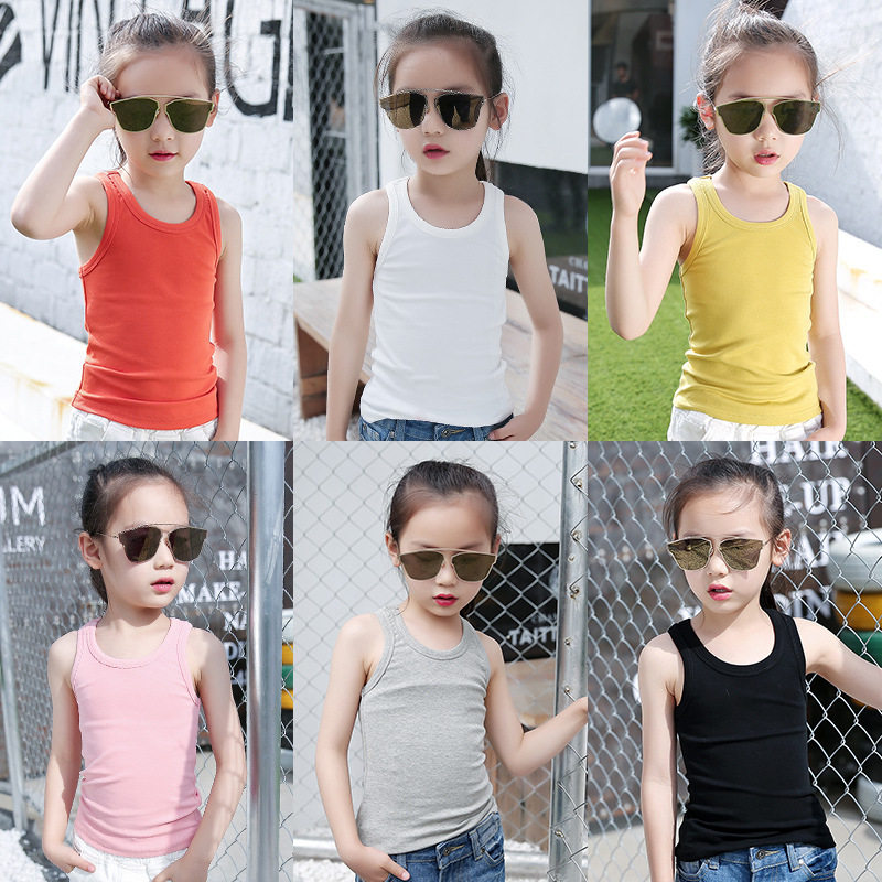 Girl vest 2022 new summer dress sleeveless T-shirt girl pure color 100 hitch baby worker character small vest harness