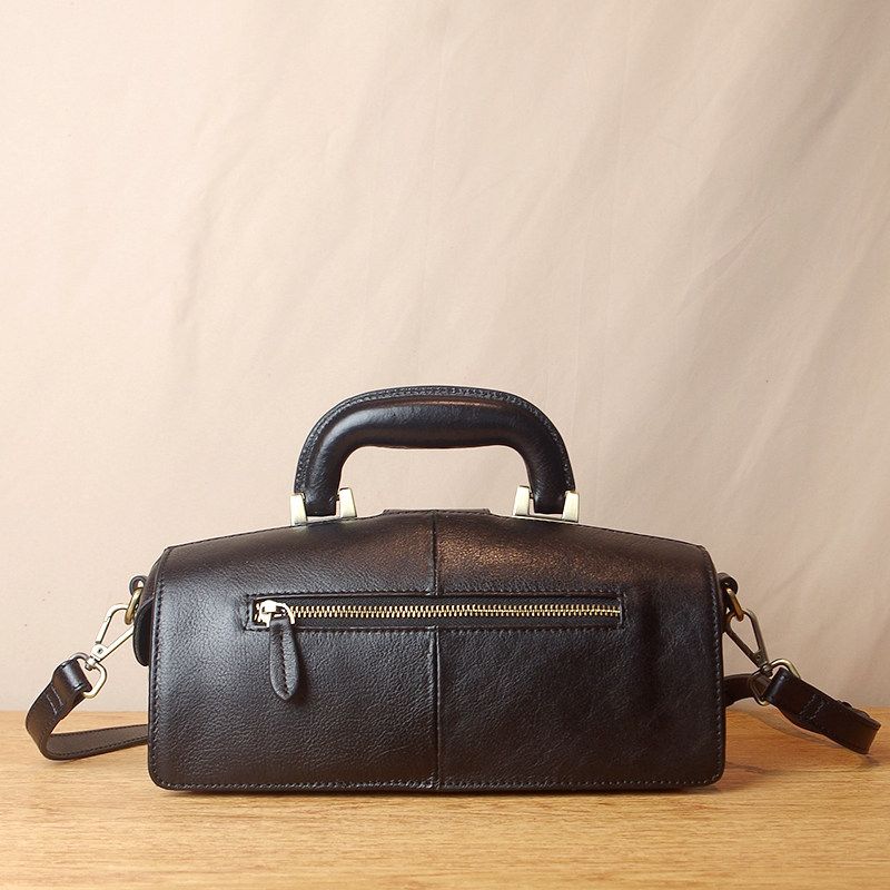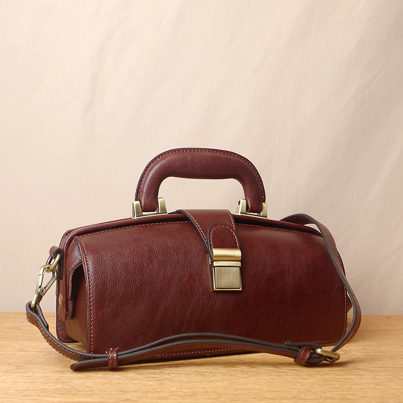Women's bag leather doctor bag handbag shoulder messenger bag retro 2021 new first layer cowhide stereotyped small square bag