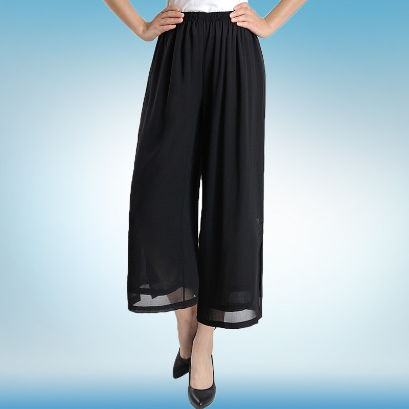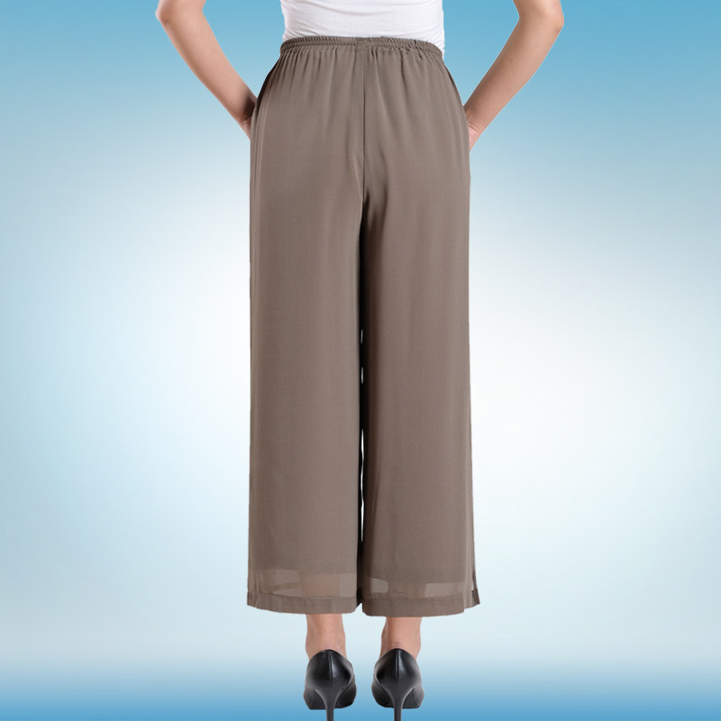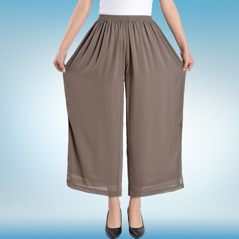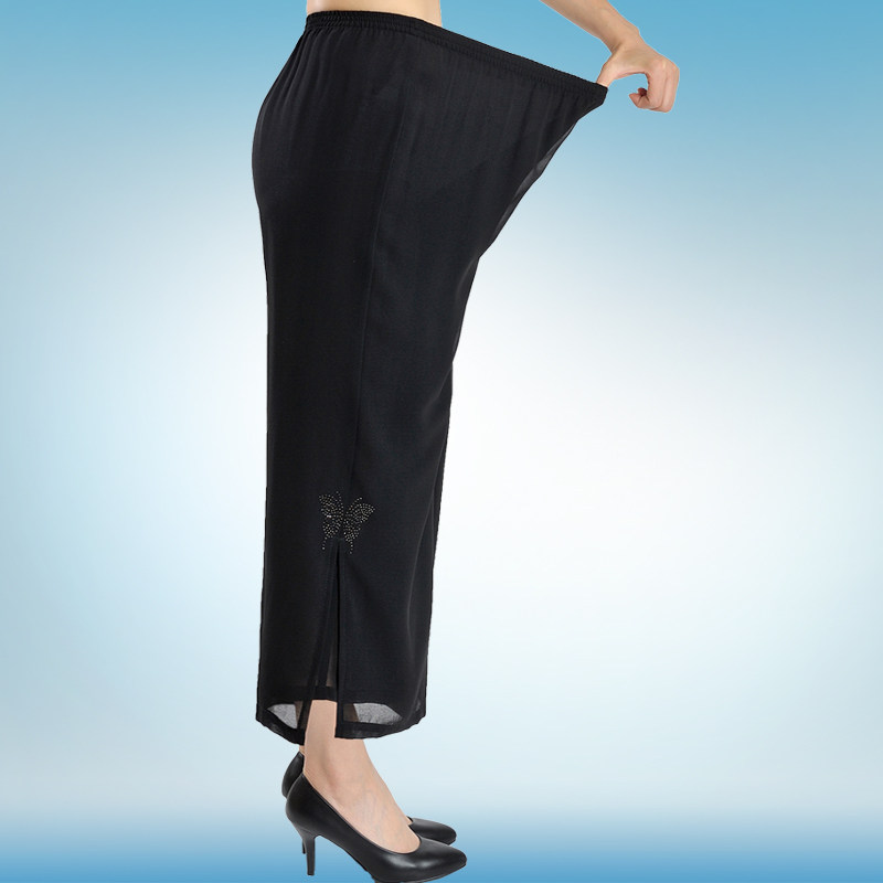 200 pounds of fat mother wide-leg pants plus fattening summer extra large size middle-aged and elderly women's pants chiffon thin silk pants throwing pants