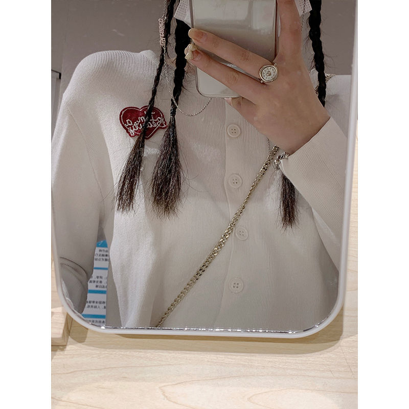 White knitted cardigan coat women's early spring 2021 new Korean version of the slim long-sleeved short thin top women's tide