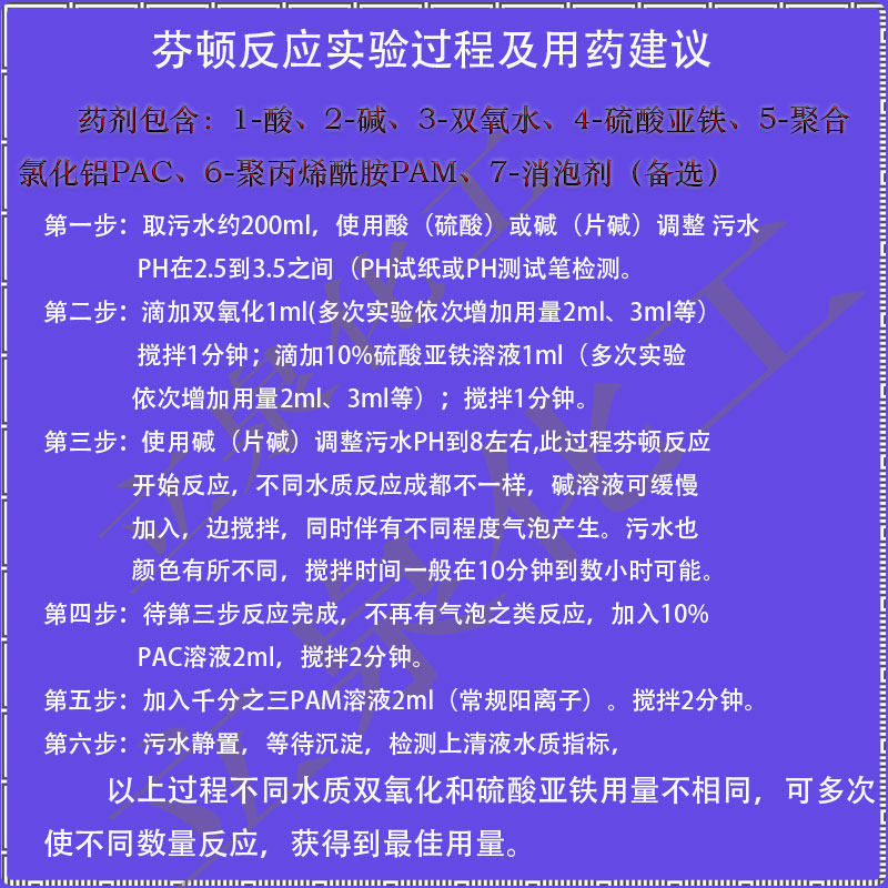 Fenton Fenton reaction reagent environmentally-friendly sewage treatment organic pollution oxidation treatment removal BODCOD fall color