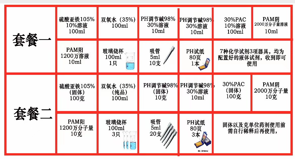 Reagent package One reagent package Two PH PH with acid 100ml-38 %PH with acid 500ml-38 %PH with acid 25 kg -38% Fenton ferrous sulfate 105 %-1