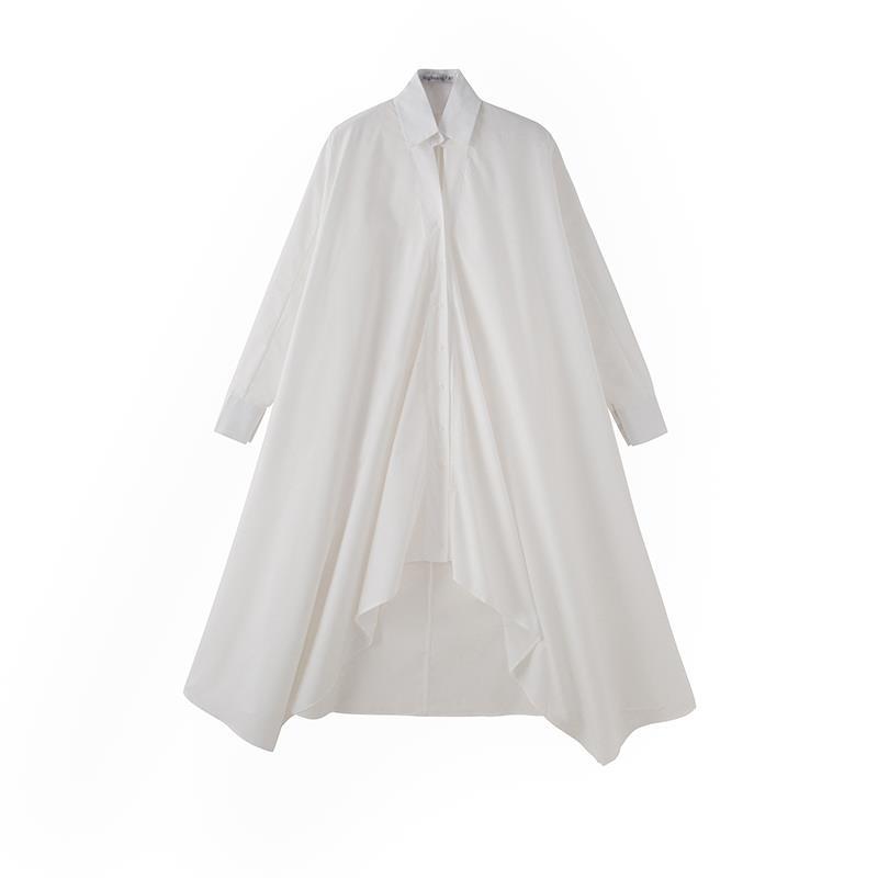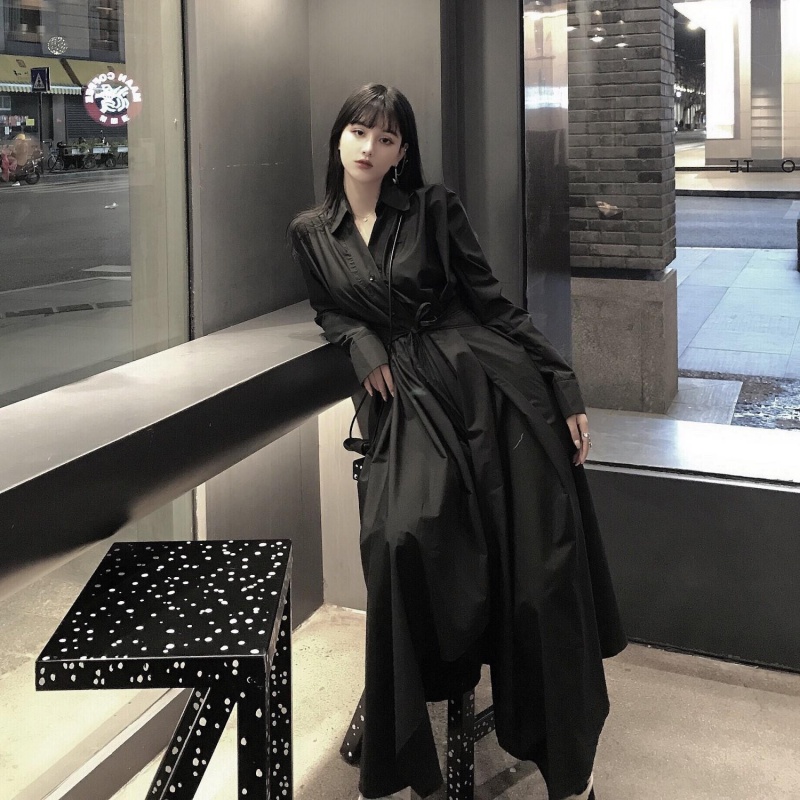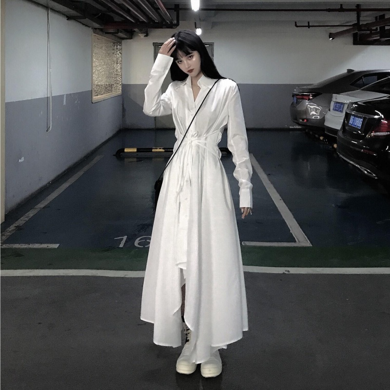White shirt dress over knee dark wind long sleeve dress 2021 Spring - dress new French retro fairy dress