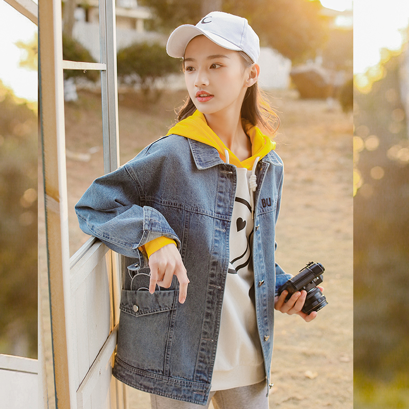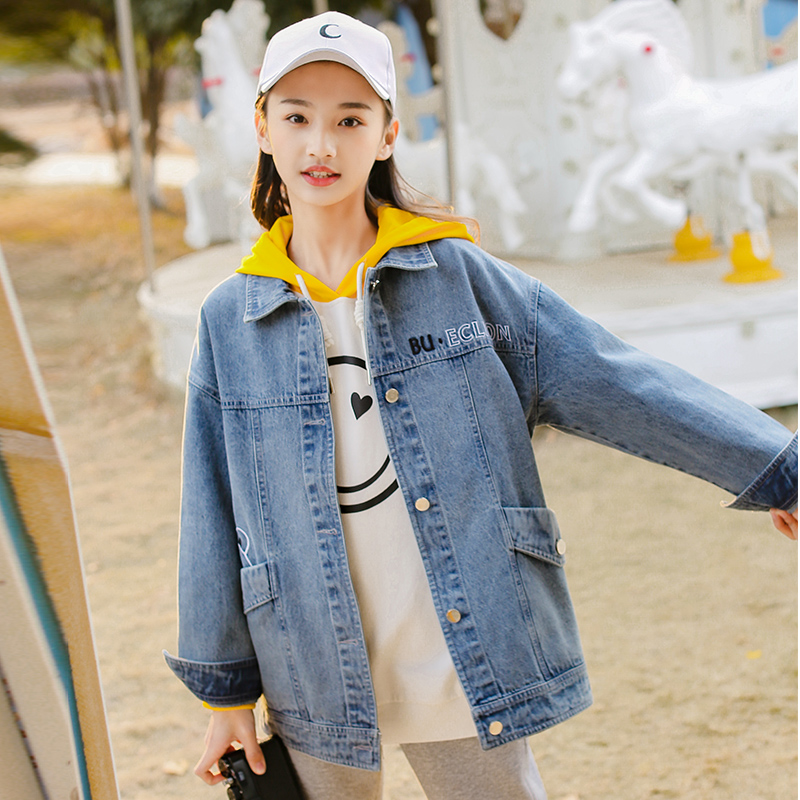 Girl Denim Jacket Jacket Woman Great Boy Spring Dress 2021 New Korean Version Foreign Pie Spring Girl Child Denim