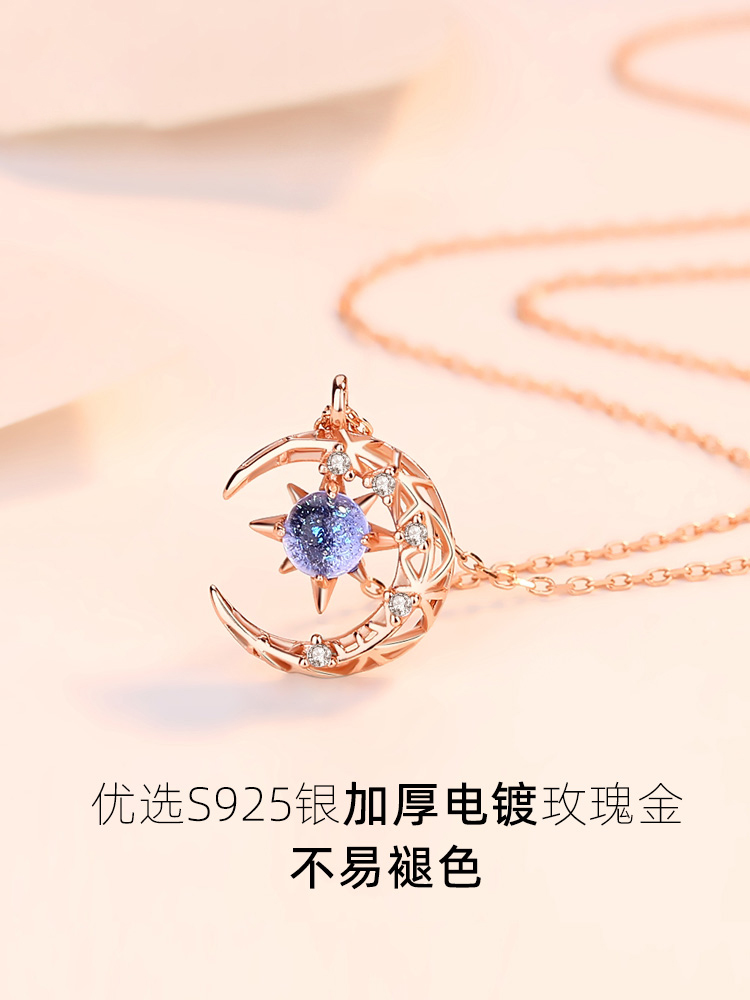 2021 new star and moon necklace female sterling silver clavicle chain light luxury niche design pendant Valentine's Day couple gift