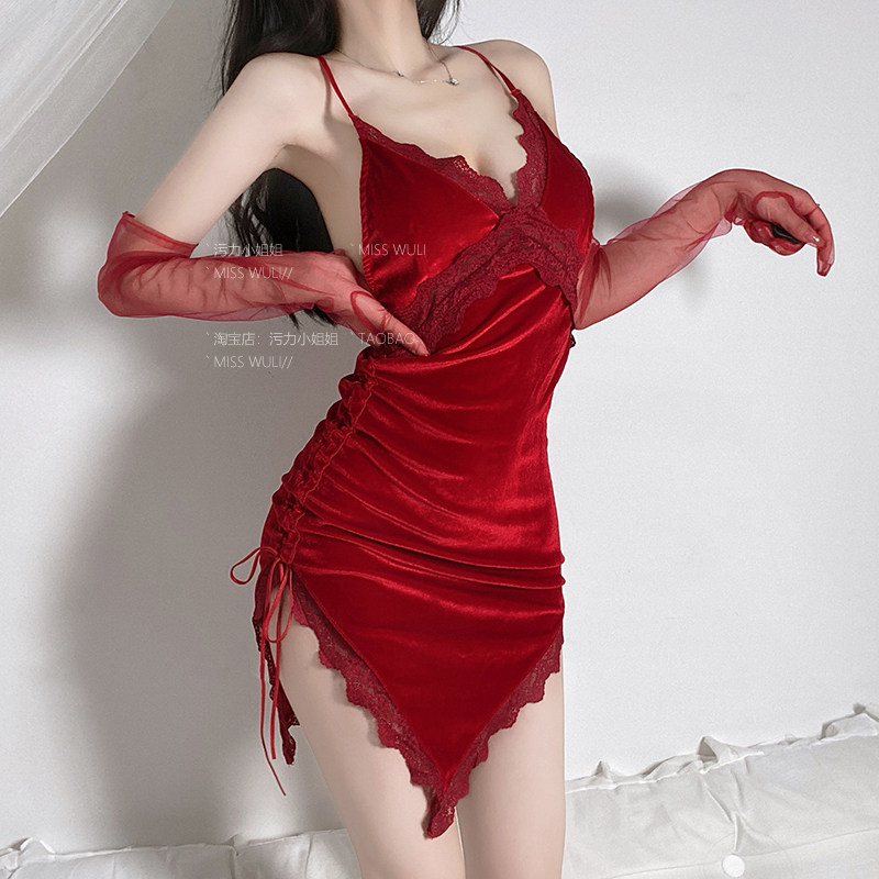 Bouquet Nightrose Sexy Pyjamas Pyjamas Sleeping Dress Lady Spring Fall 2021 Ocean Dress Cross Shoulder Strap Velvet