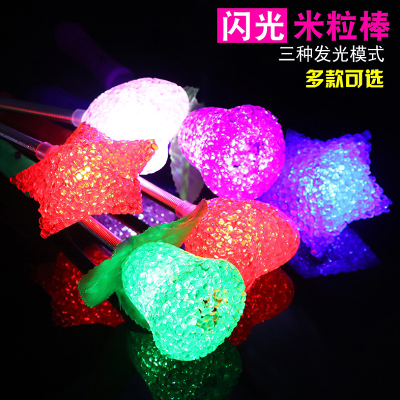 Ground-pushing luminous rice grain stick flash Firefly night market Children's toy micro-quotient suction powder sweep for small gift batch.