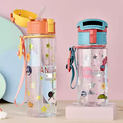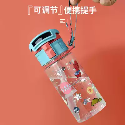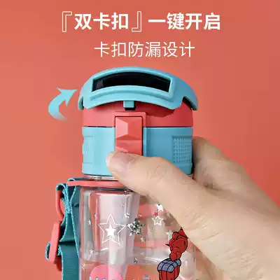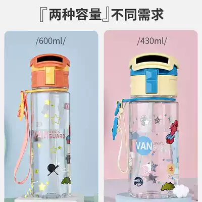 Children's water cup with straw summer baby kindergarten summer drop-resistant plastic portable double lid kettle