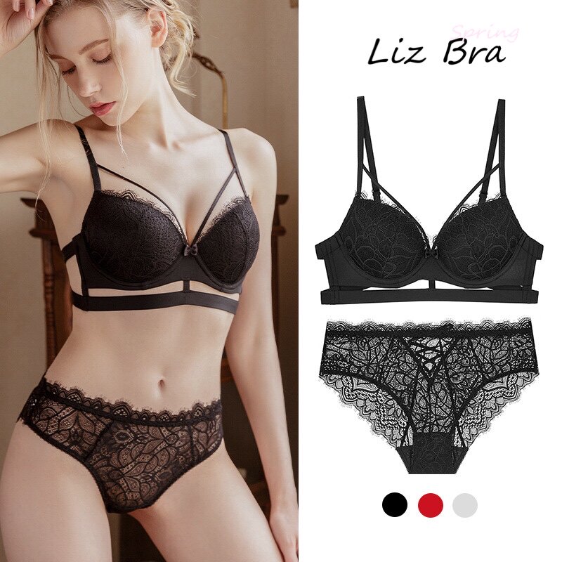 French sexy lace beautiful back underwear women's small breasts gathered on the top with steel ring on the top thin bottom thick thin underwear set