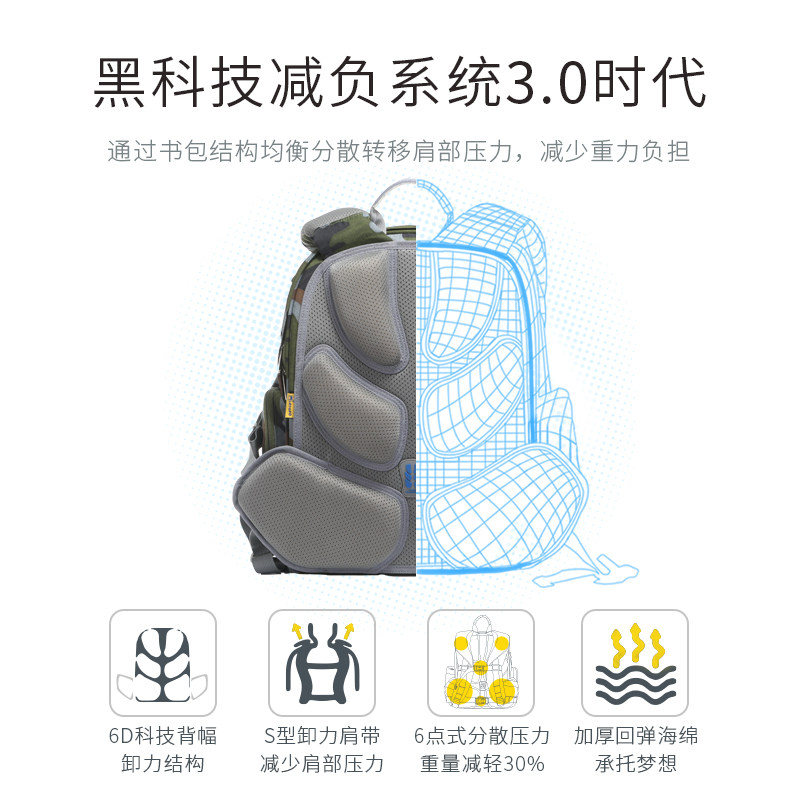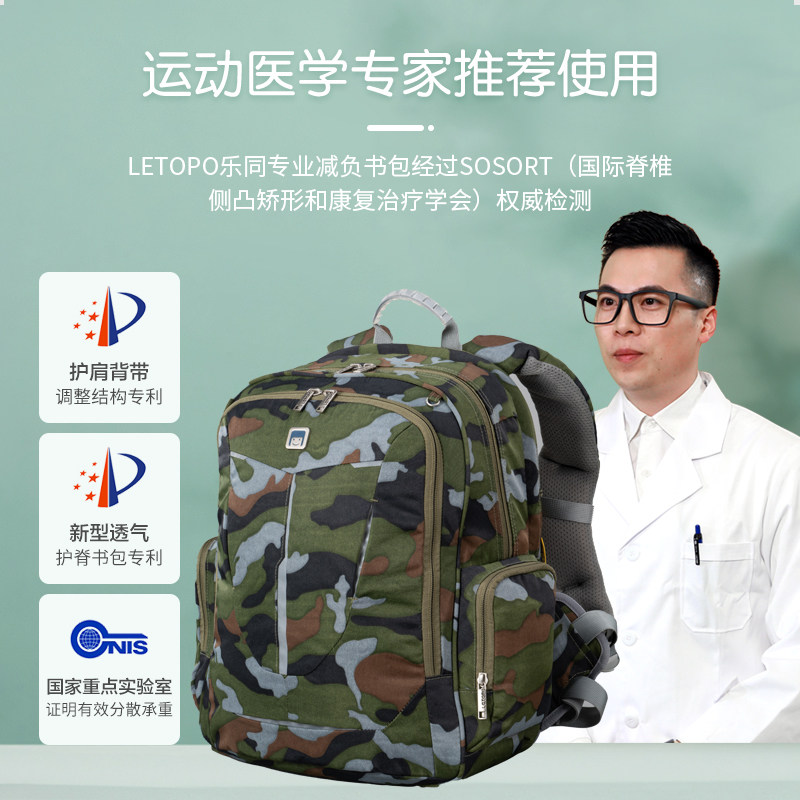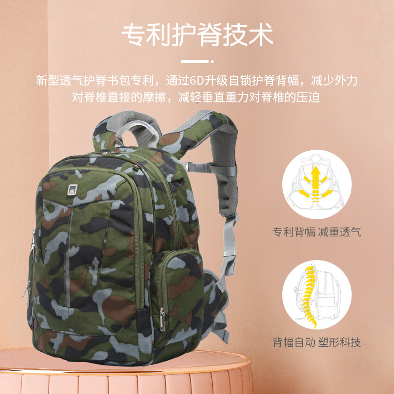 Letong letopo primary school students ridge protection burden reduction decompression camouflage big children fashion waterproof children's schoolbag backpack
