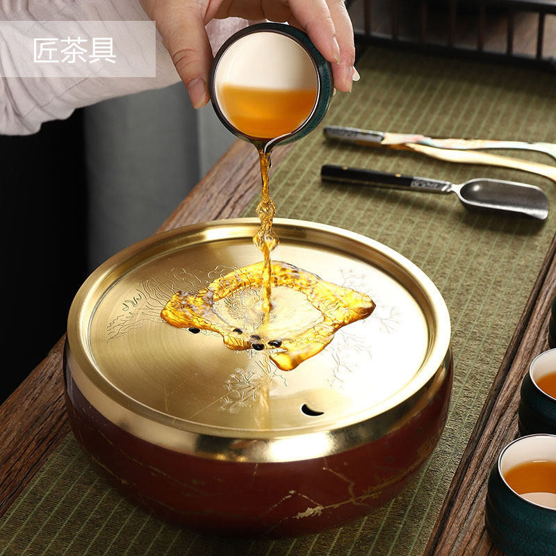 Home big number pure copper tea washing cup washing water pelvis construction water tea residue barrel light lavish tea waste water cylinder dry tea tray tea table-Taobao